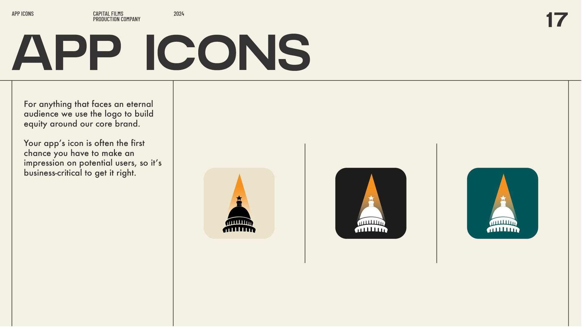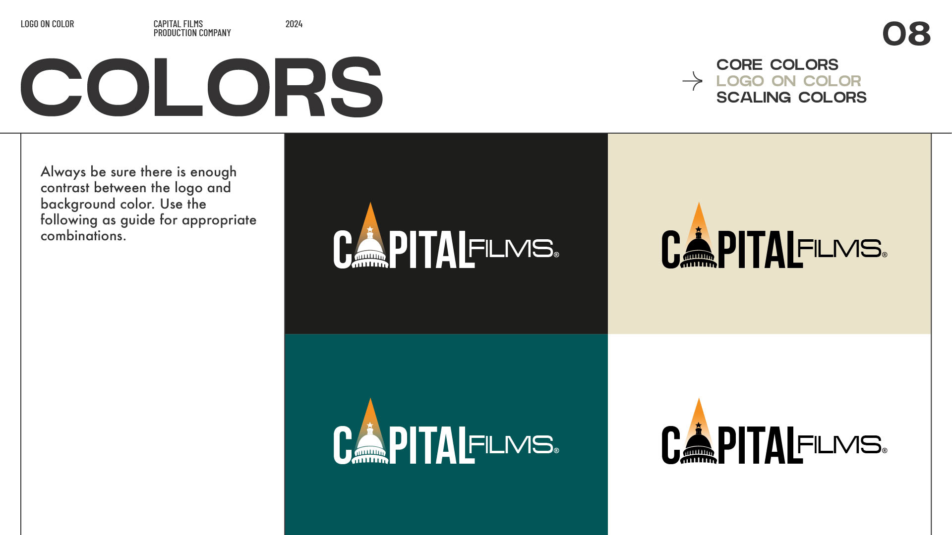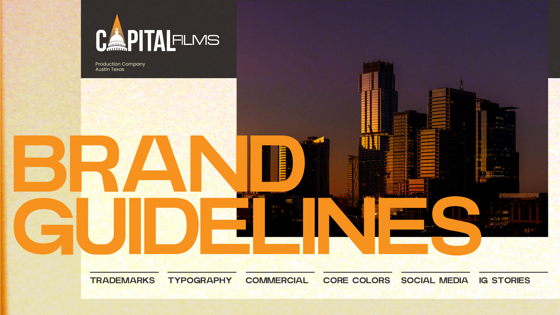 Capital Films is a production studio here in Austin, Texas and I had the pleasure of creating a logo and brand book for them. The creative process behind the Capital Films logo began with exploring how to visually represent a production company that feels bold, cinematic, and authoritative. Inspired by the name “Capital,” (and that Austin is the capital of Texas) the design centers around the iconic capitol dome. A warm spotlight gradient above the dome adds a film-inspired touch of energy and ambition. The final mark is versatile, scalable, and designed to stand out across film titles, posters, and digital platforms.
